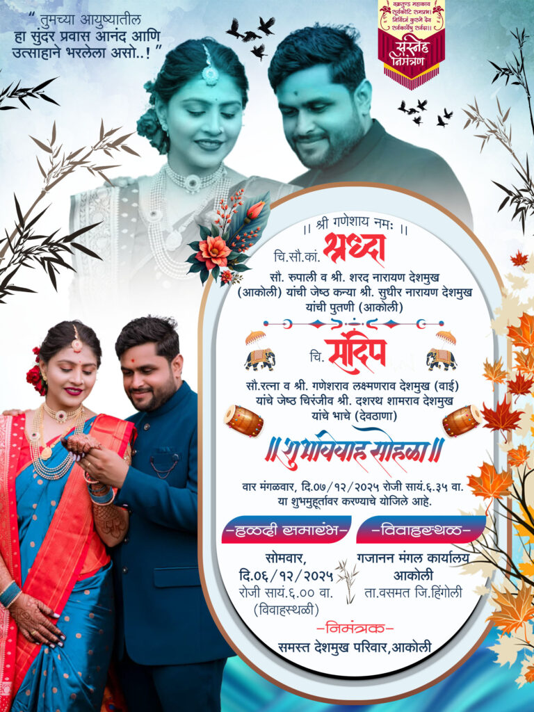| डिझाईन चे नाव | Marathi Wedding Invitation Card Design |