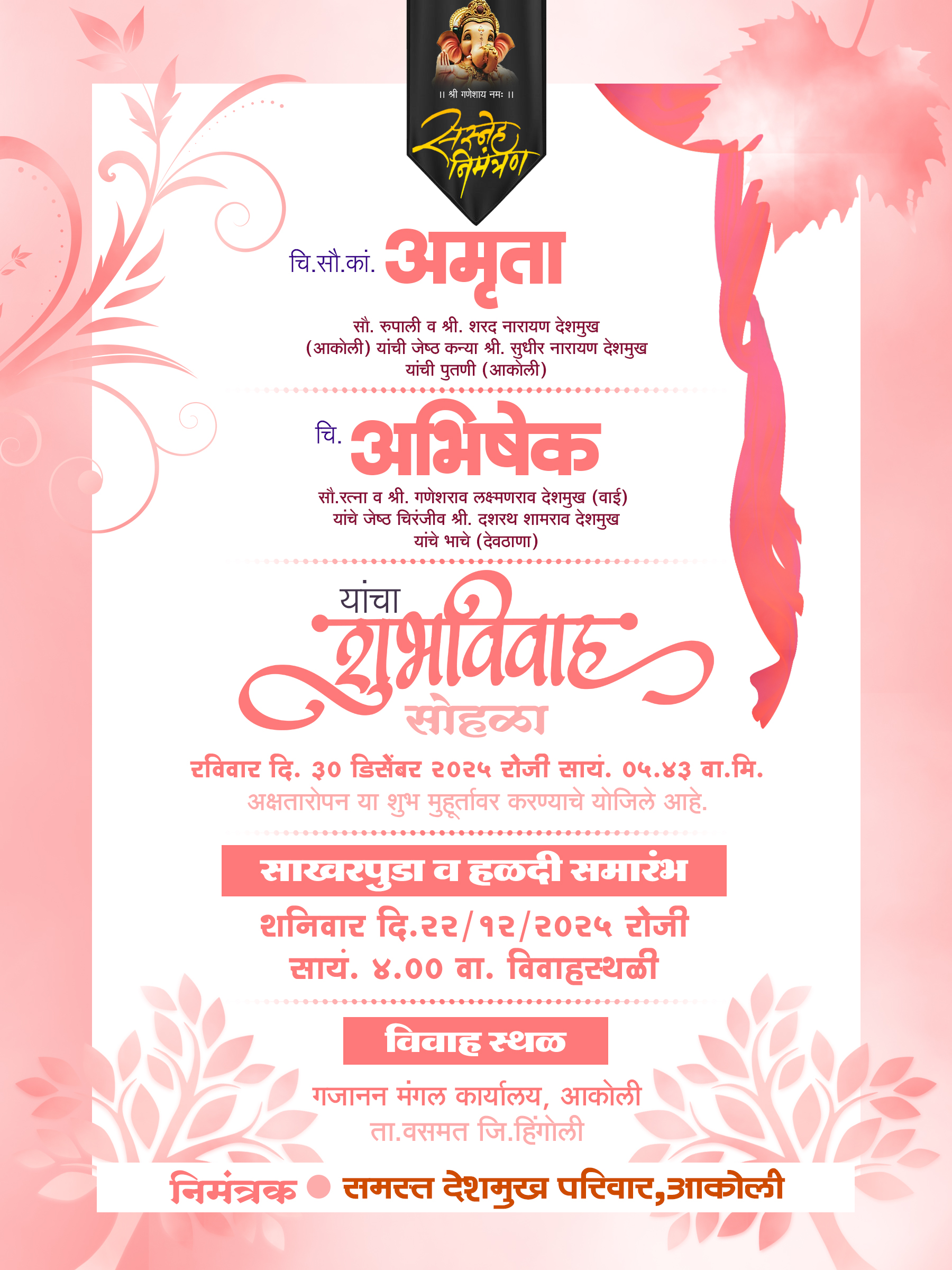 मराठी संस्कृती जपत आधुनिक calligraphy आणि soft color tones वापरण्यात आले आहेत.