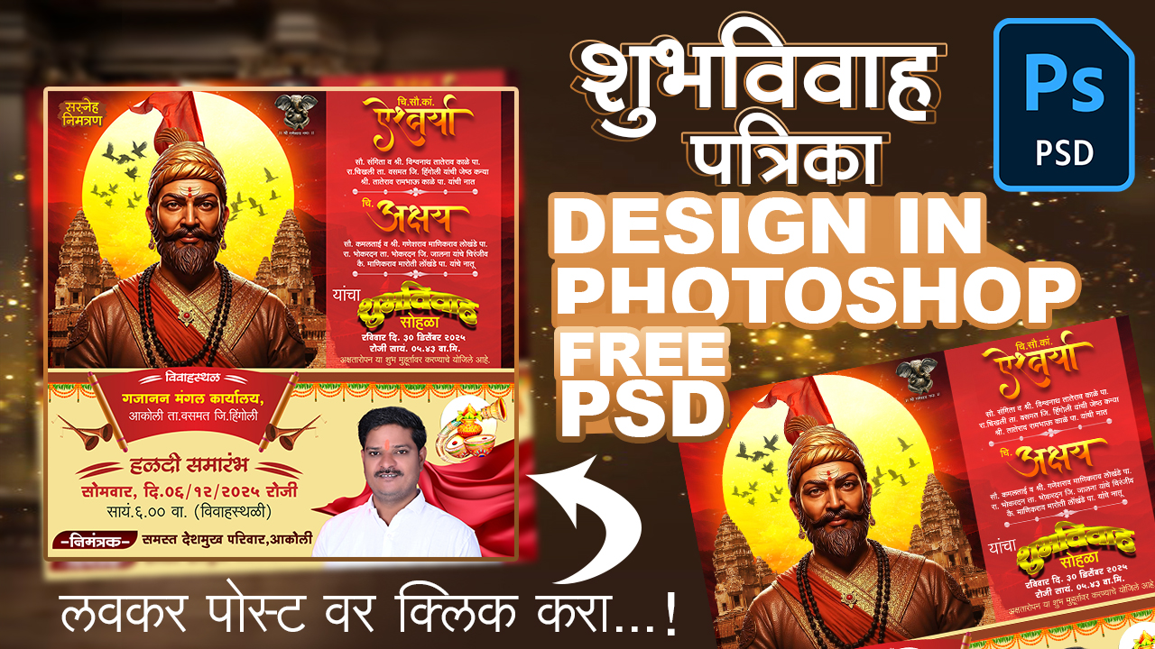 ही PSD फाईल तुम्ही Photoshop मध्ये अगदी सोप्या पद्धतीने एडिट करू शकता – नाव, तारीख, वेळ, स्थळ, फोटो सर्व काही सहज बदलता येईल.